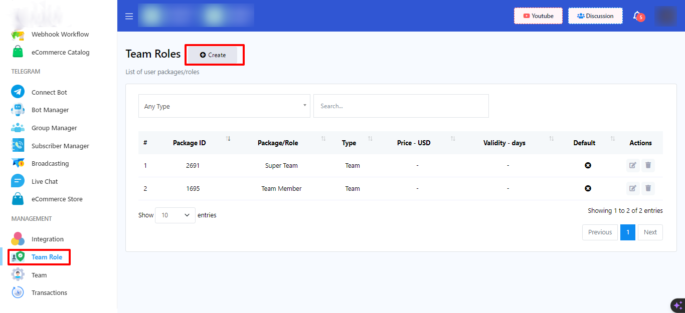 - From the dashboard, go to `Team Role`.