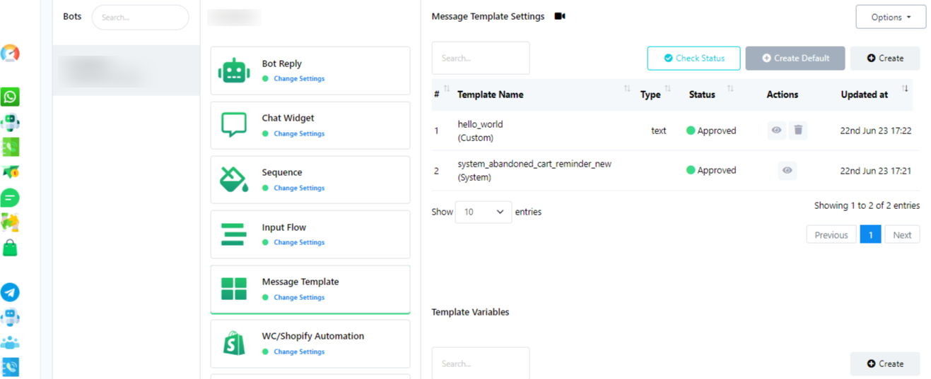 - Go to Whotify Dashboard and navigate to the Bot manager section.